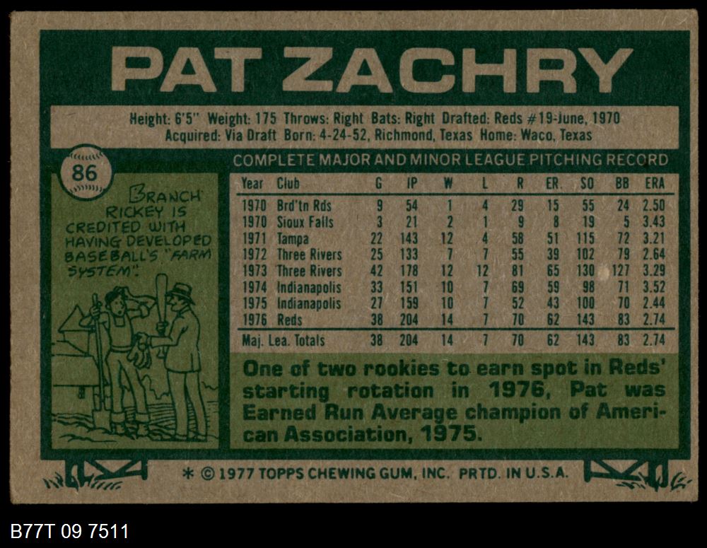 | 1977 Topps #86 Pat Zachry | 2 - GOOD | Front | Back |