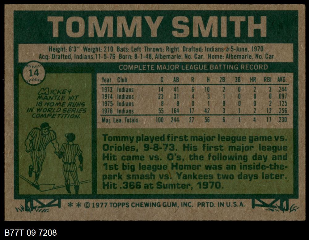 | 1977 Topps #14 Tommy Smith | 4 - VG/EX | Front | Back |
