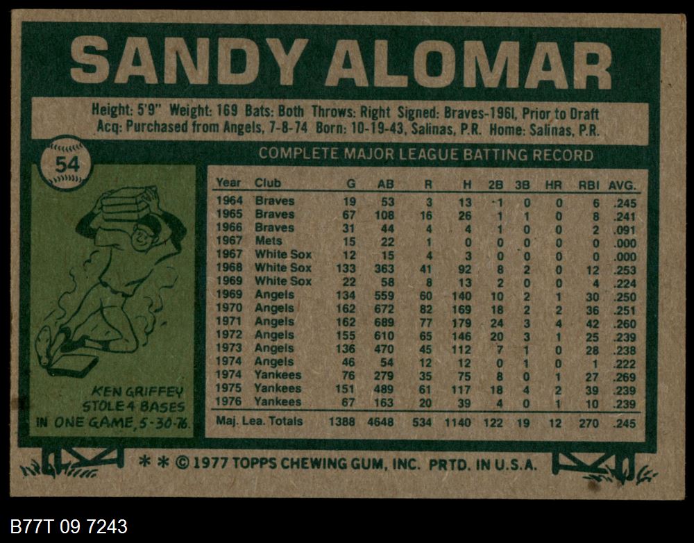 | 1977 Topps #54 Sandy Alomar | 4 - VG/EX | Front | Back |