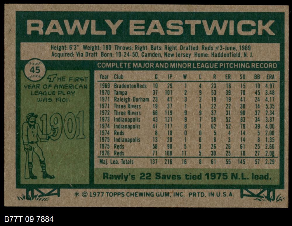 | 1977 Topps #45 Rawly Eastwick | 5 - EX | Front | Back |