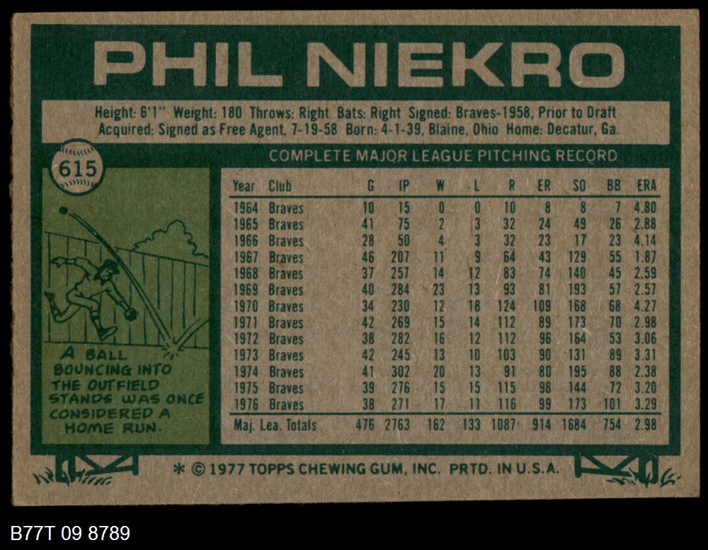 | 1977 Topps #615 Phil Niekro | 4 - VG/EX | Front | Back |