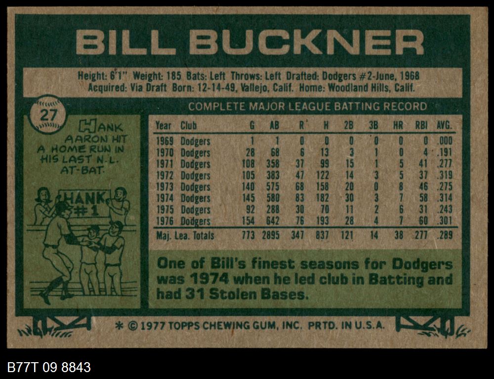 | 1977 Topps #27 Bill Buckner | 4 - VG/EX | Front | Back |