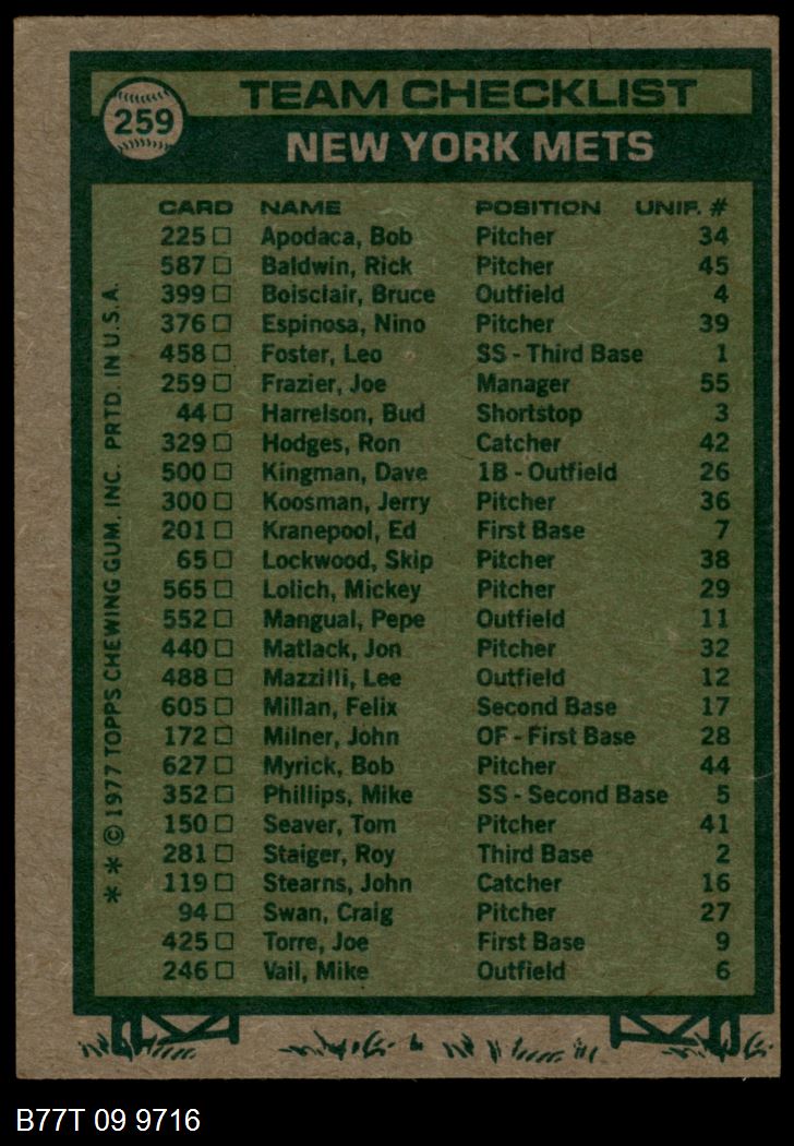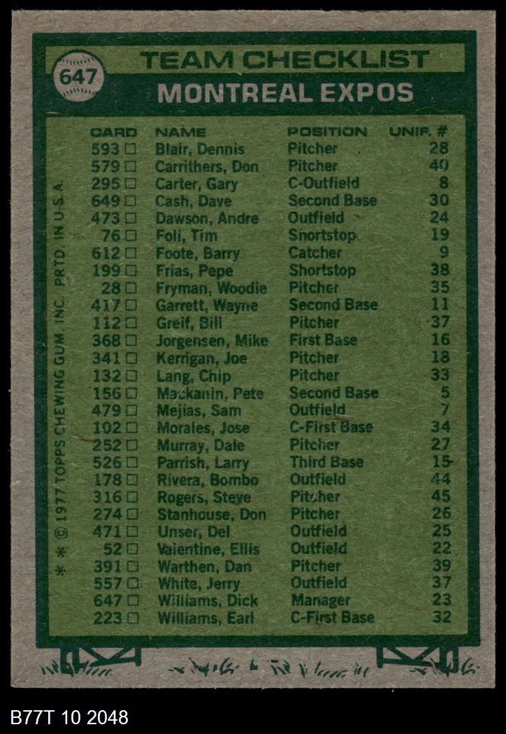 | 1977 Topps #647 - Dick Williams Expos Team Checklist | 5.5 - EX+ | Front | Back |