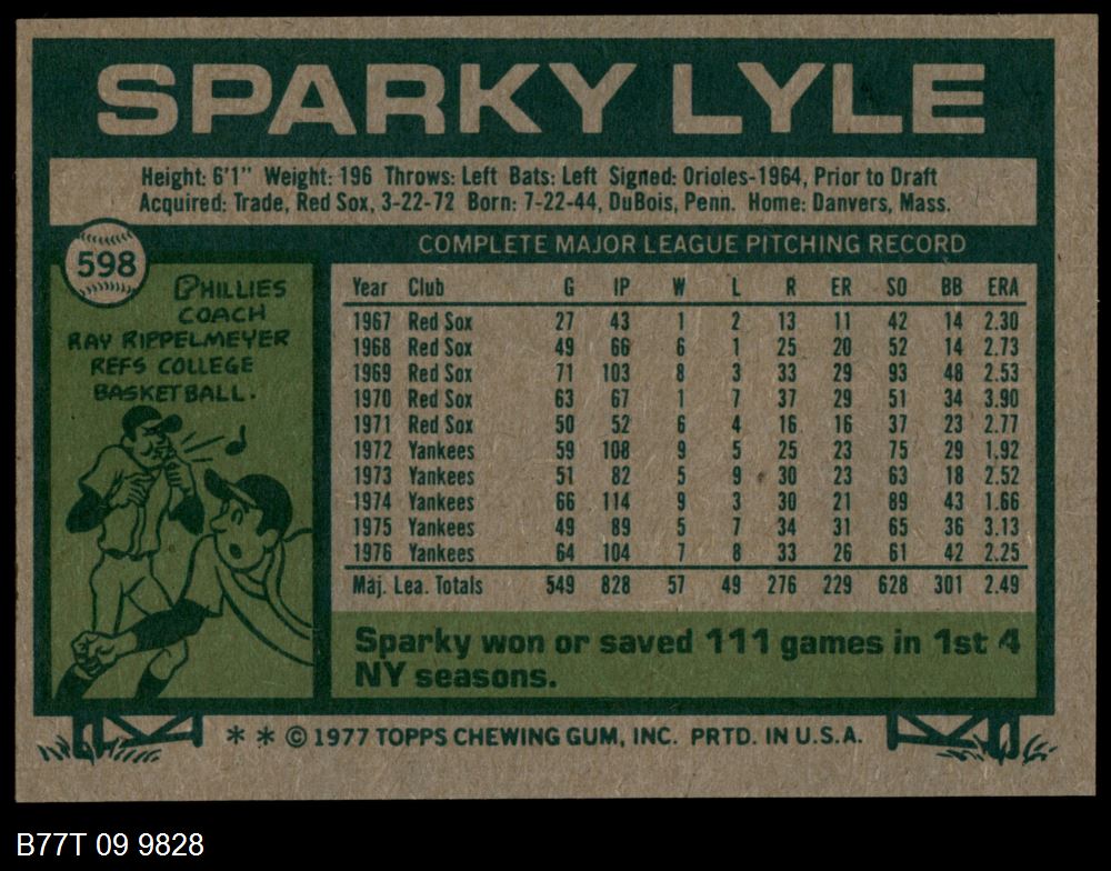| 1977 Topps #598 Sparky Lyle | 4 - VG/EX | Front | Back |