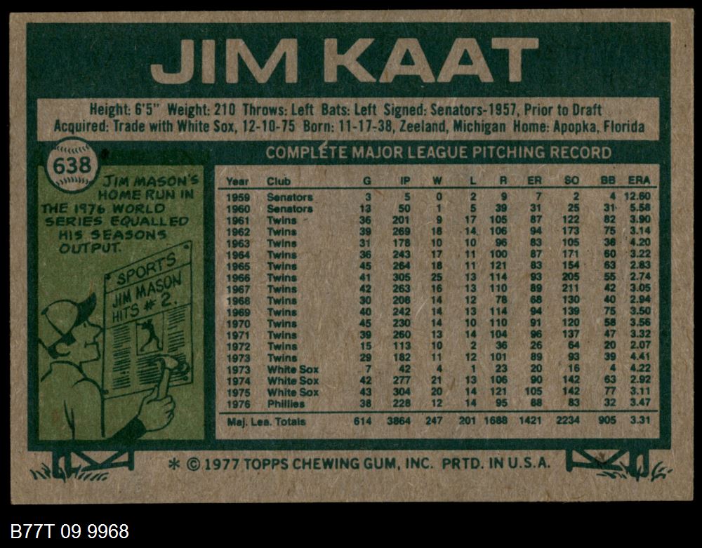 | 1977 Topps #638 Jim Kaat | 4 - VG/EX | Front | Back |