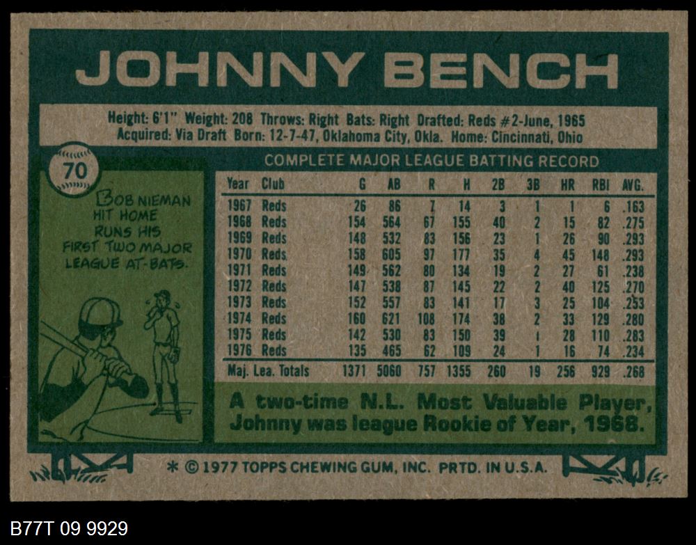 | 1977 Topps #70 Johnny Bench | 5 - EX | Front | Back |