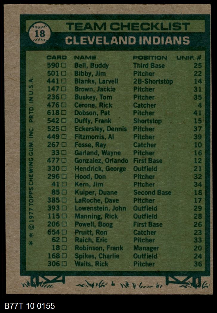 | 1977 Topps #18 - Frank Robinson Indians Team Checklist | 4.5 - VG/EX+ | Front | Back |