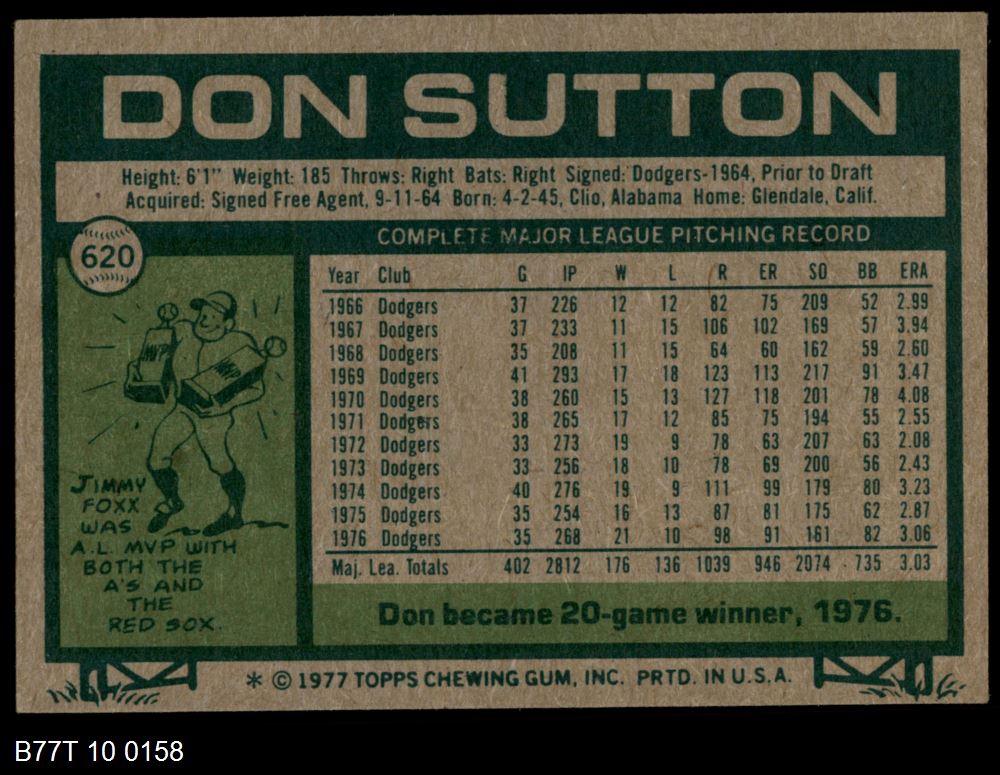 | 1977 Topps #620 Don Sutton | 4 - VG/EX | Front | Back |
