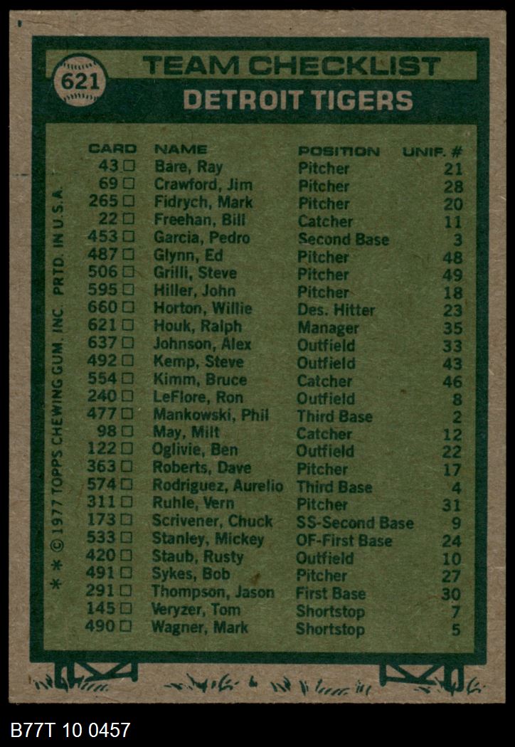 | 1977 Topps #621 - Ralph Houk Tigers Team Checklist | 4 - VG/EX | Front | Back |