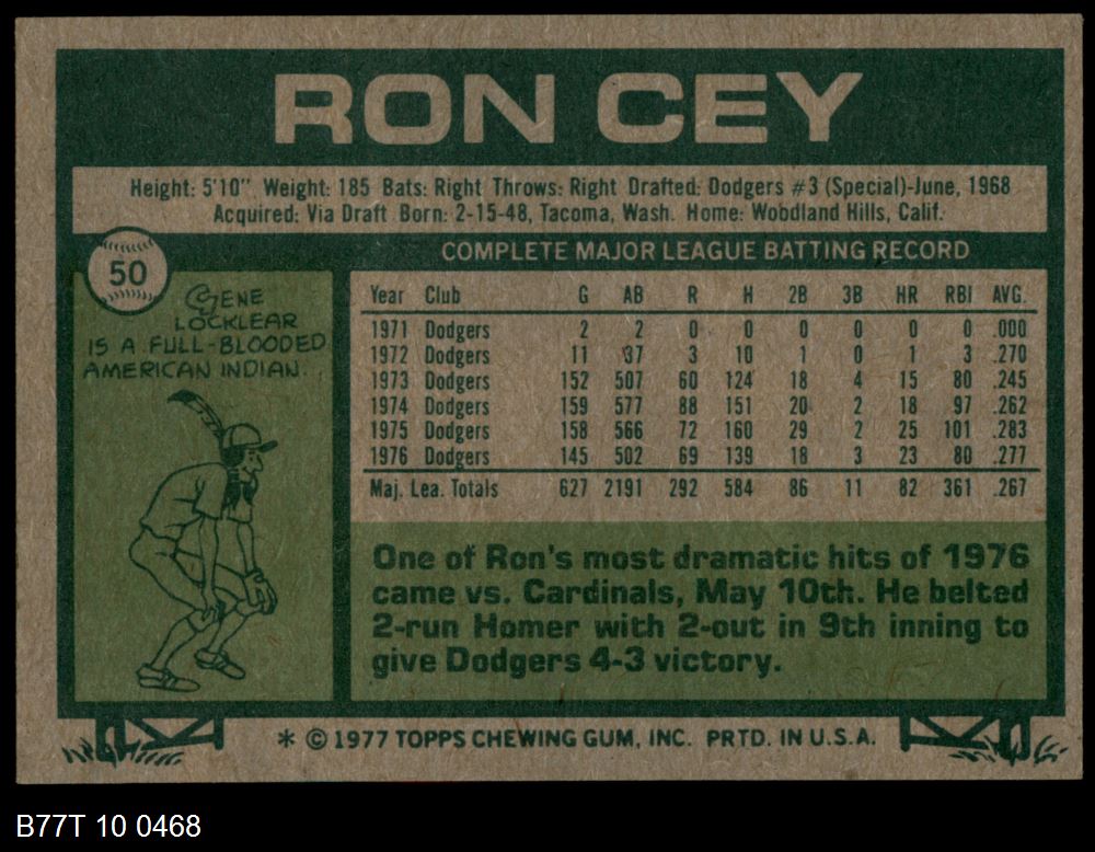 | 1977 Topps #50 Ron Cey | 5 - EX | Front | Back |