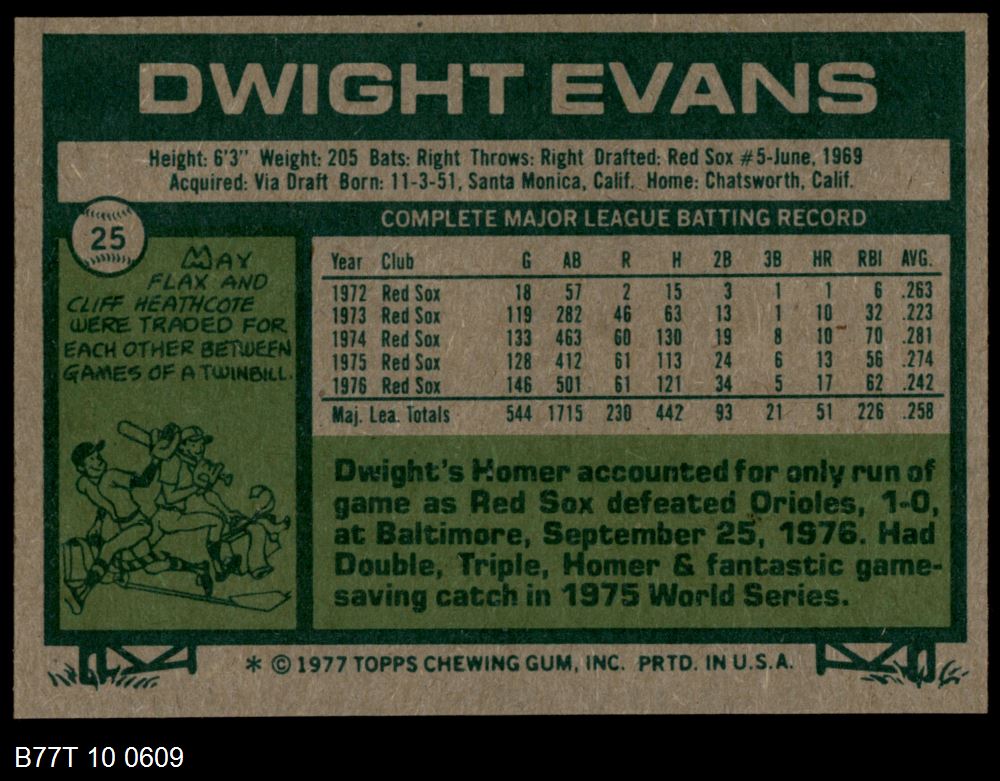 | 1977 Topps #25 Dwight Evans | 4 - VG/EX | Front | Back |