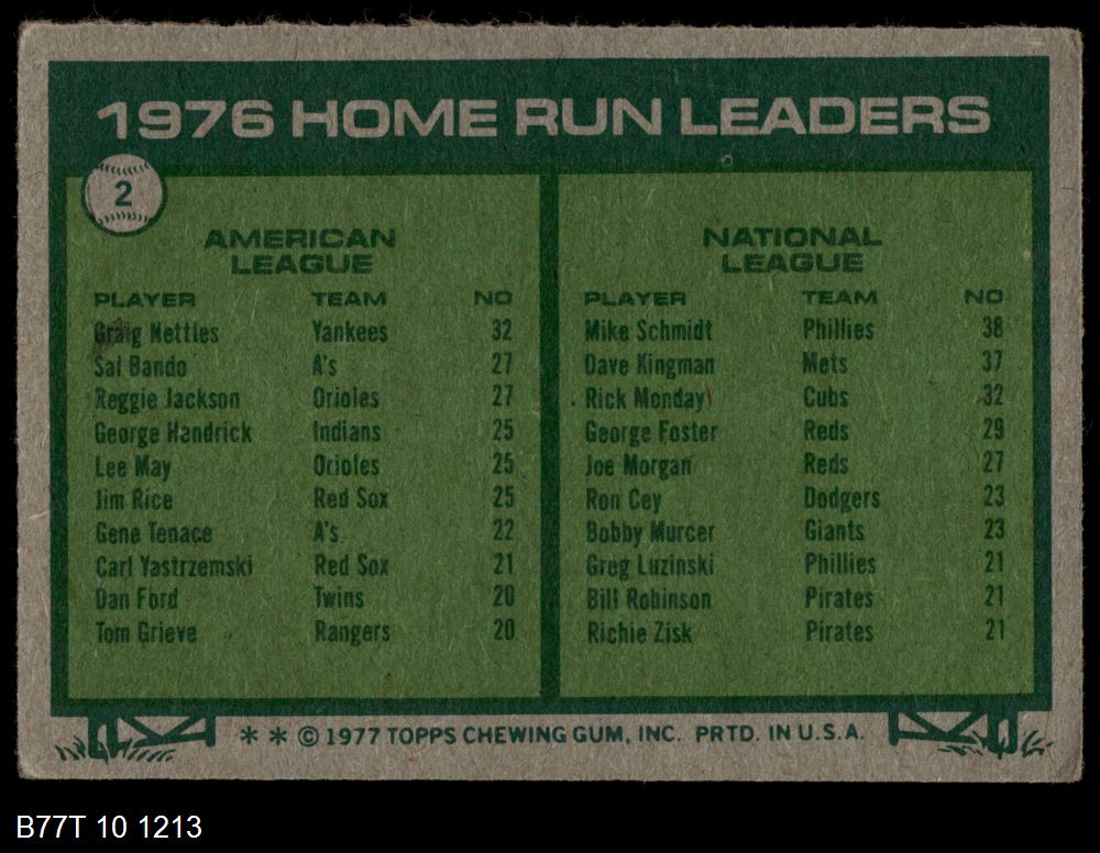 | 1977 Topps #2 - Graig Nettles / Mike Schmidt HR Leaders | 2 - GOOD | Front | Back |