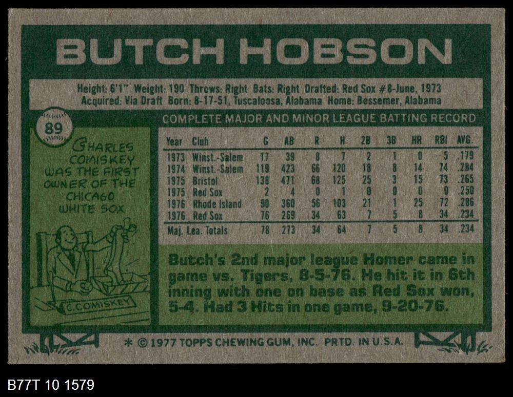 | 1977 Topps #89 Butch Hobson | 4 - VG/EX | Front | Back |