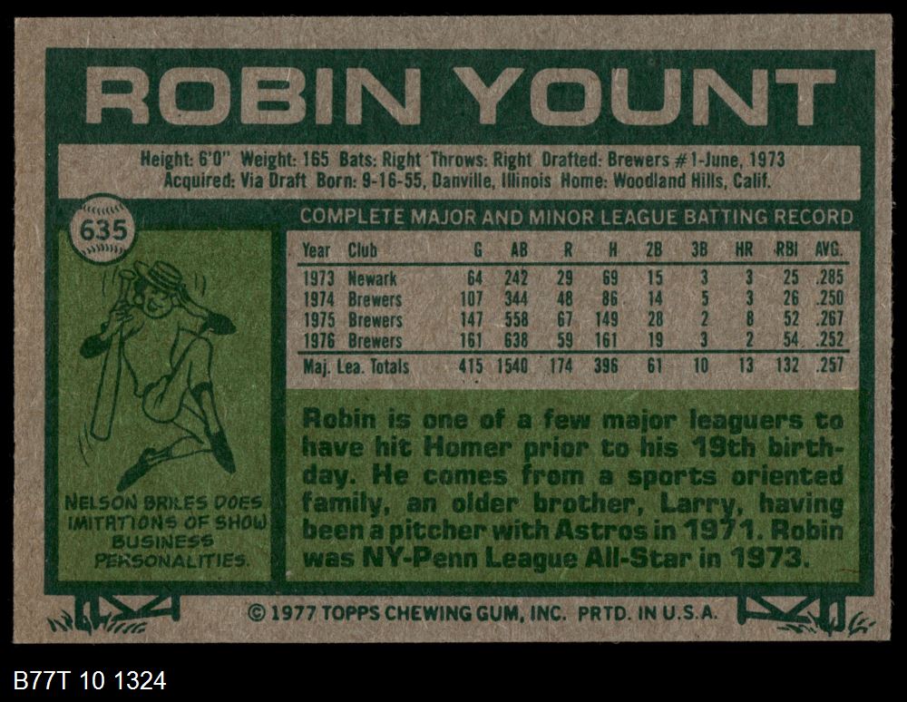 | 1977 Topps #635 Robin Yount | 4 - VG/EX | Front | Back |