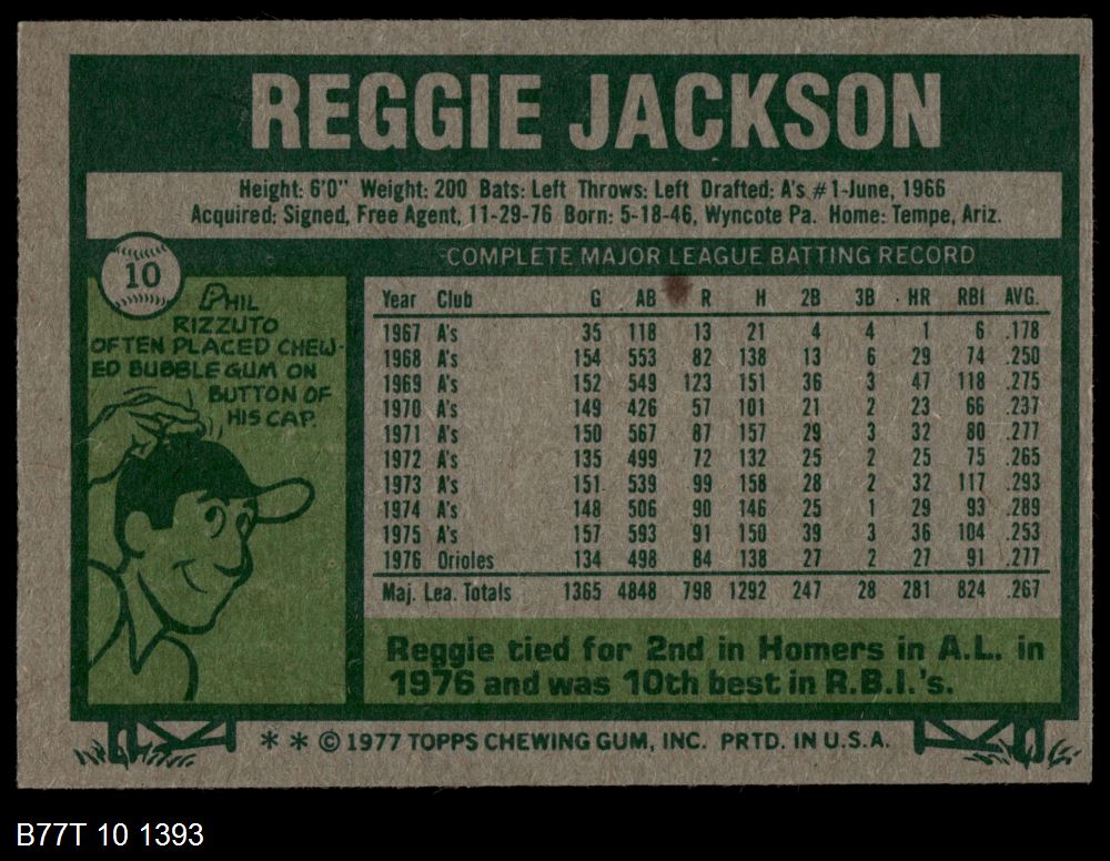 | 1977 Topps #10 Reggie Jackson | 3 - VG | Front | Back |