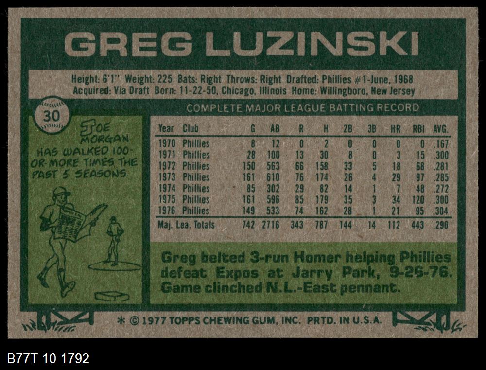| 1977 Topps #30 Greg Luzinski | 7 - NM | Front | Back |