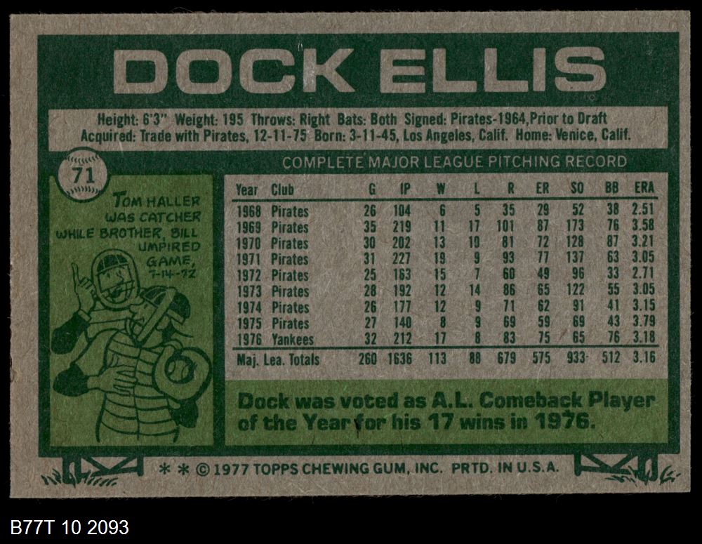 | 1977 Topps #71 Dock Ellis | 5 - EX | Front | Back |
