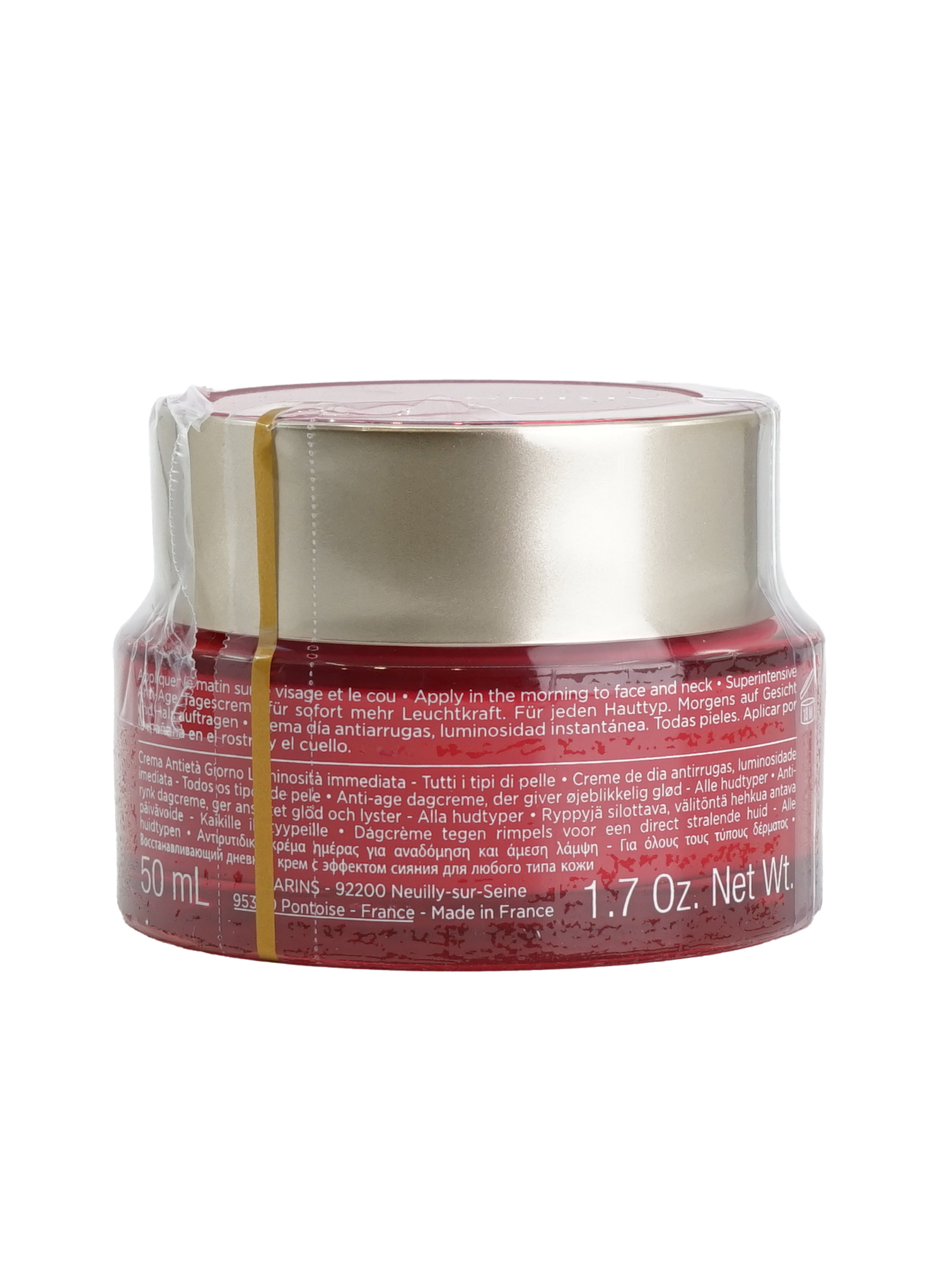 Clarins Rose Radiance Cream Super Restorative for All Skin Types is an anti aging day cream that helps nourish, boost radiance, and restore your skin to its youth. Created to hydrate, brighten, and revitalize the skin. Contains rose extract and rose, for their hydrating, soothing, and brightening properties. Help to replenish moisture in the skin, reduce redness and inflammation, and promote a more radiant complexion. Provides intense hydration to the skin, helping to moisturize and nourish dry or dehydrated skin types. Brightens the skin, giving it a more radiant and luminous appearance. This can help to even out skin tone and reduce the appearance of dullness or fatigue. Contains plant extracts with anti aging properties, such as antioxidants or peptides. These ingredients help to combat signs of aging, such as fine lines, wrinkles, and loss of elasticity. Formula easily absorbs into the skin. Leaves skin soft and looking healthy. This is a dermatologist tested, cruelty free, and vegan formula. Ingredients include glycerin, hazelnut seed oil, shea butter, hibiscus flower extract, citric acid, and olive fruit extract. How to use: Wash your face with a gentle cleanser appropriate for your skin type and pat it dry with a clean towel. It is essential to start with a clean canvas to ensure that the day cream can penetrate the skin effectively. If you use a toner as part of your skincare routine, apply it after cleansing and before applying your day cream. Toner helps to balance the skin's pH levels and prepare it for better absorption of skincare products. Gently pat or massage cream onto your face using upward and outward motions. Start from the center of your face and work your way outwards, covering your forehead, cheeks, nose, and chin. Be sure to also apply the cream to your neck and decolletage if desired, as these areas can show signs of aging too. Avoid tugging or pulling on your skin while applying the day cream. Instead, use gentle pressure with your fingertips to help the product penetrate the skin. Allow cream to absorb for a few minutes before proceeding with any other skincare products or makeup application. This allows the active ingredients in the cream to work effectively.