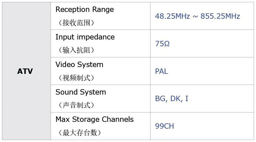 Input: VGA, HDMI, AV, USB, RF, Audio
