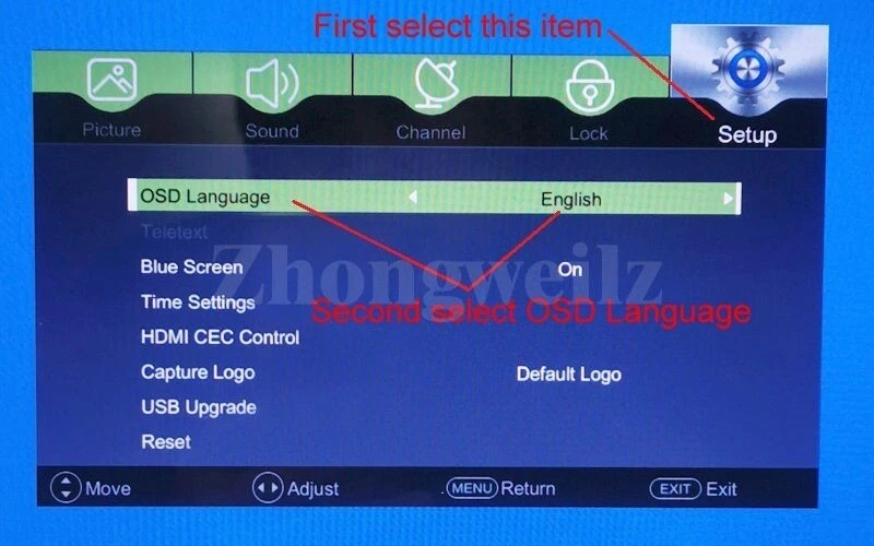 Note: There may be black screen during adjustment, please don't stop, continue to press the right or left button until it is normal. Do not arbitrarily modify other options in the menu.
