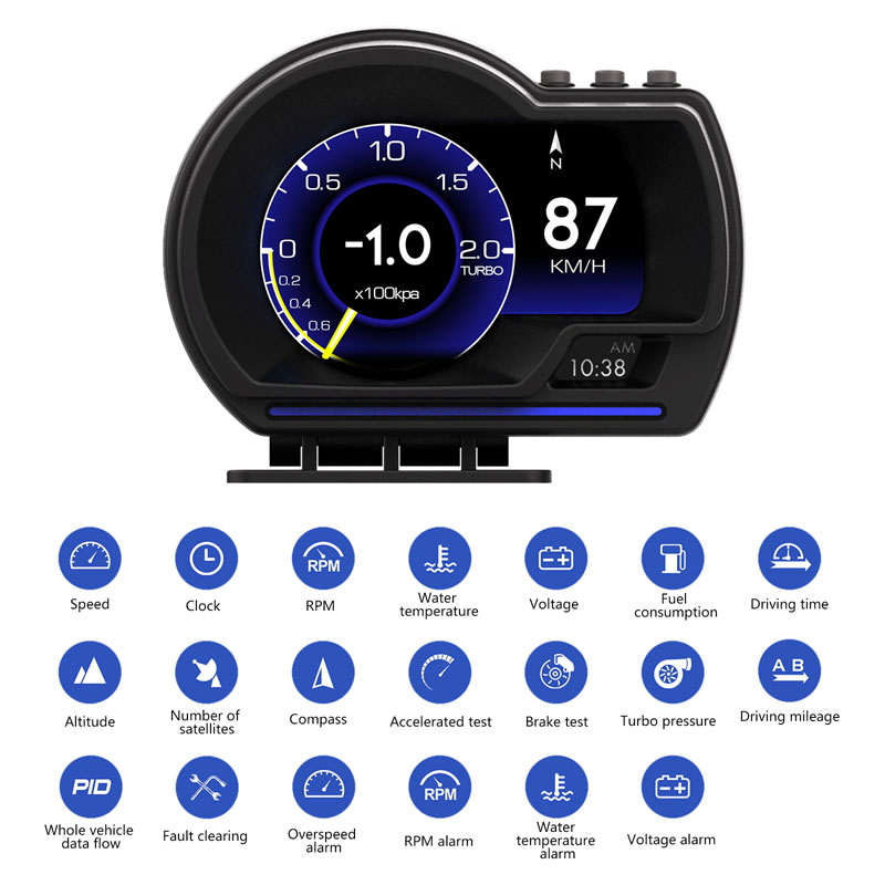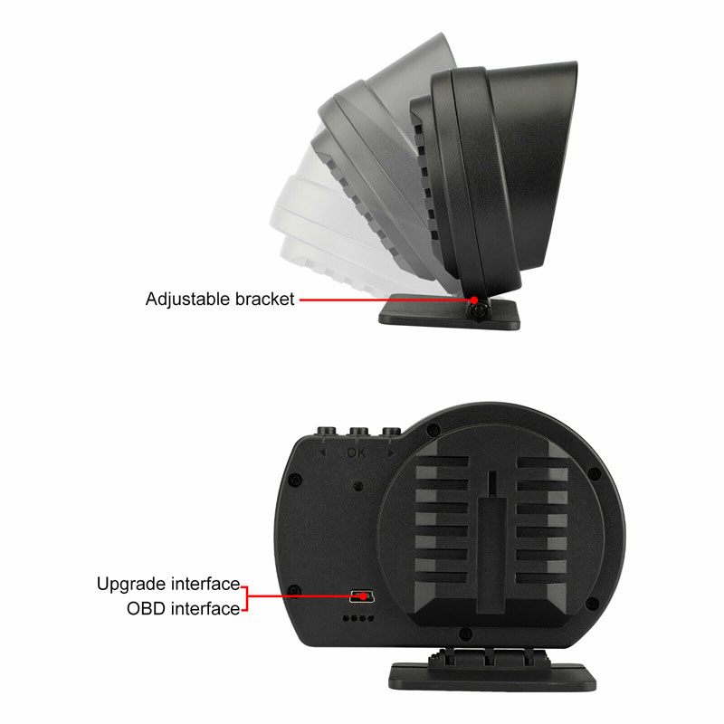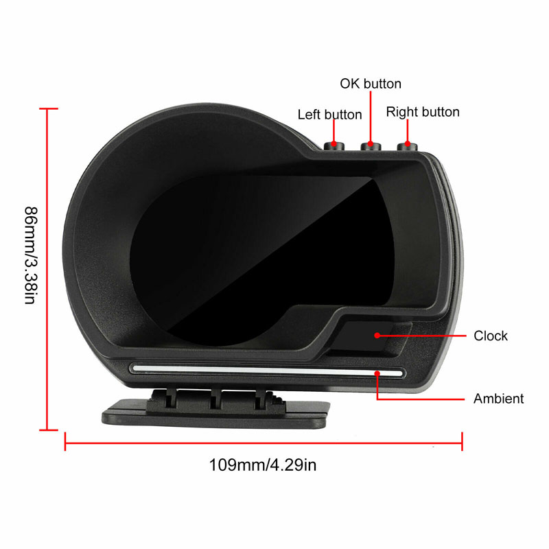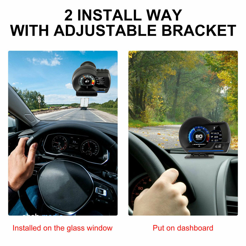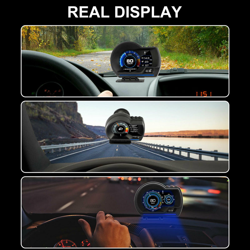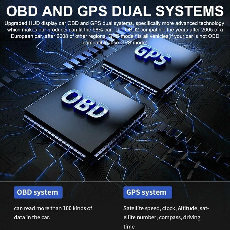 Product Function: Product Highlights: Package List: • Smart HUD Gauge • OBD connecting cable • USB cable • Velcro sticker • Small Crowbar • Small Screwdriver • English Manual NOTICE: 1. If set speed unit to KM/H, the water temperature unit will automatically be , driving distance unit will automatically be KM, fuel conusmption unit will automatically be L/100 KM If set speed unit to MPH, the water temperature unit will automatically be , driving distance unit will automatically be Mile, fuel conusmption unit will automatically be MPG. 2. The default display is in OBD2+GPS dual mode at the same time, but if the car don't have OBD2 protocol or the OBD2 protocol is incompatible, then it will only show GPS function. 3. HIGH QUALITY-CE FCC RoHS Certification, Superior quality. If you have any questions about this product, please feel to contact us. We will get back to you as soon as possible and help you solve the problem. Attention: This OBD2 Car HUD are not compatible with following cars: - European and American cars manufactured before 2008 and Asian cars manufactured before 2008. - American cars produced before 2008 and all Dodge, JEEP, Sail, Chrysler cars. - France cars manufactured by FAT,DS,PEUGEOT,Citroen,Renault,Simka, Amirka - Japanese cars: Suzuki, Mazda, Infiniti (QX50, Q50, Q501), Toyota avanza 2013, Lexus (is250, ex250, ES300H), Honda (jazz, CRV) are not compatible. And all Japanese cars before 2008 are not compatiable. - Some models of Kia and Hyundai cannot use this OBD2 HUD (2013 Hyundai Sonata, 2017 Kia Soul PS, etc.) - Oil-electric hybrid and some diesel vehicles cannot use OBD2 HUD, GPS HUD are recommended. - Pickup Trucks and Modified ECU vehicles are not suitable for this HUD.