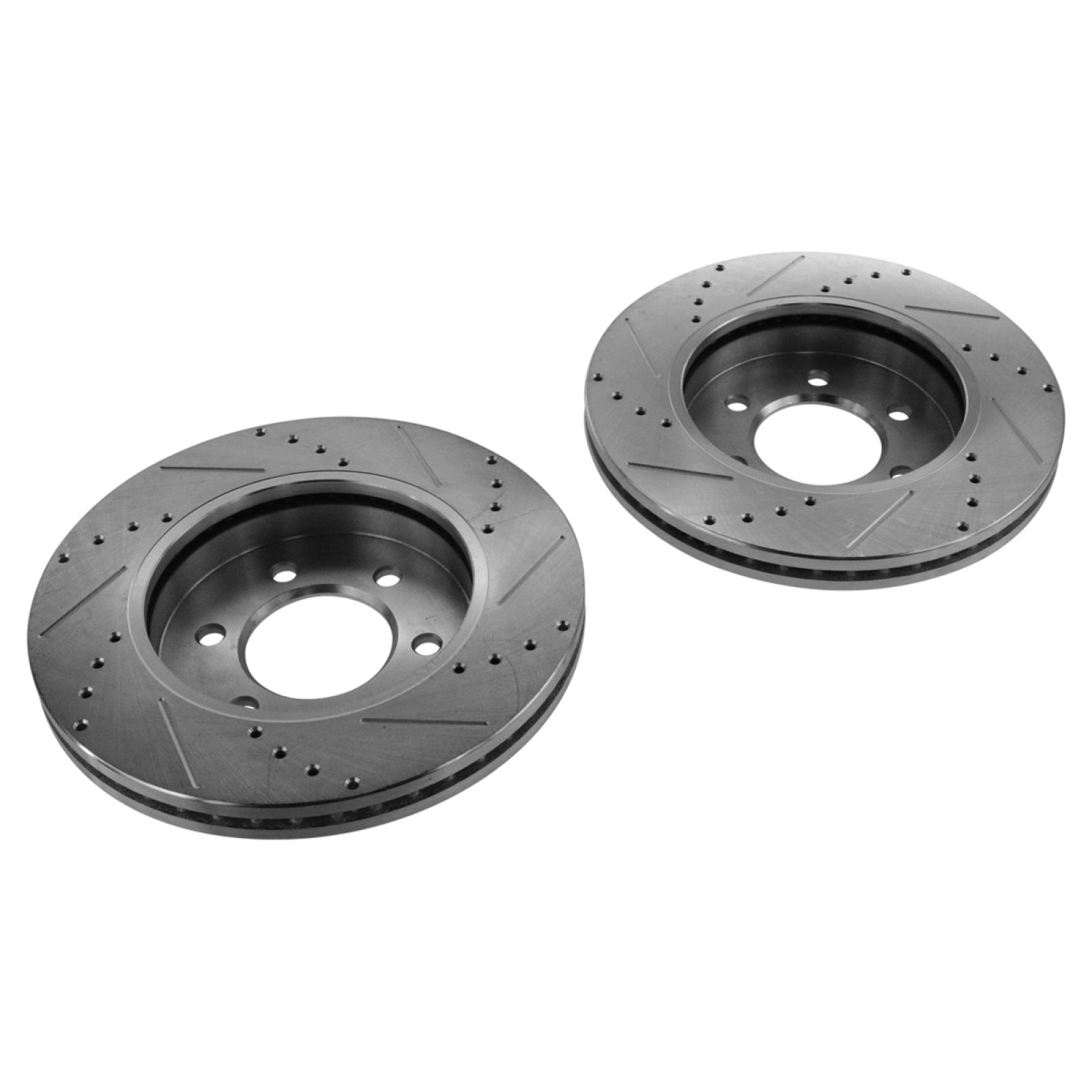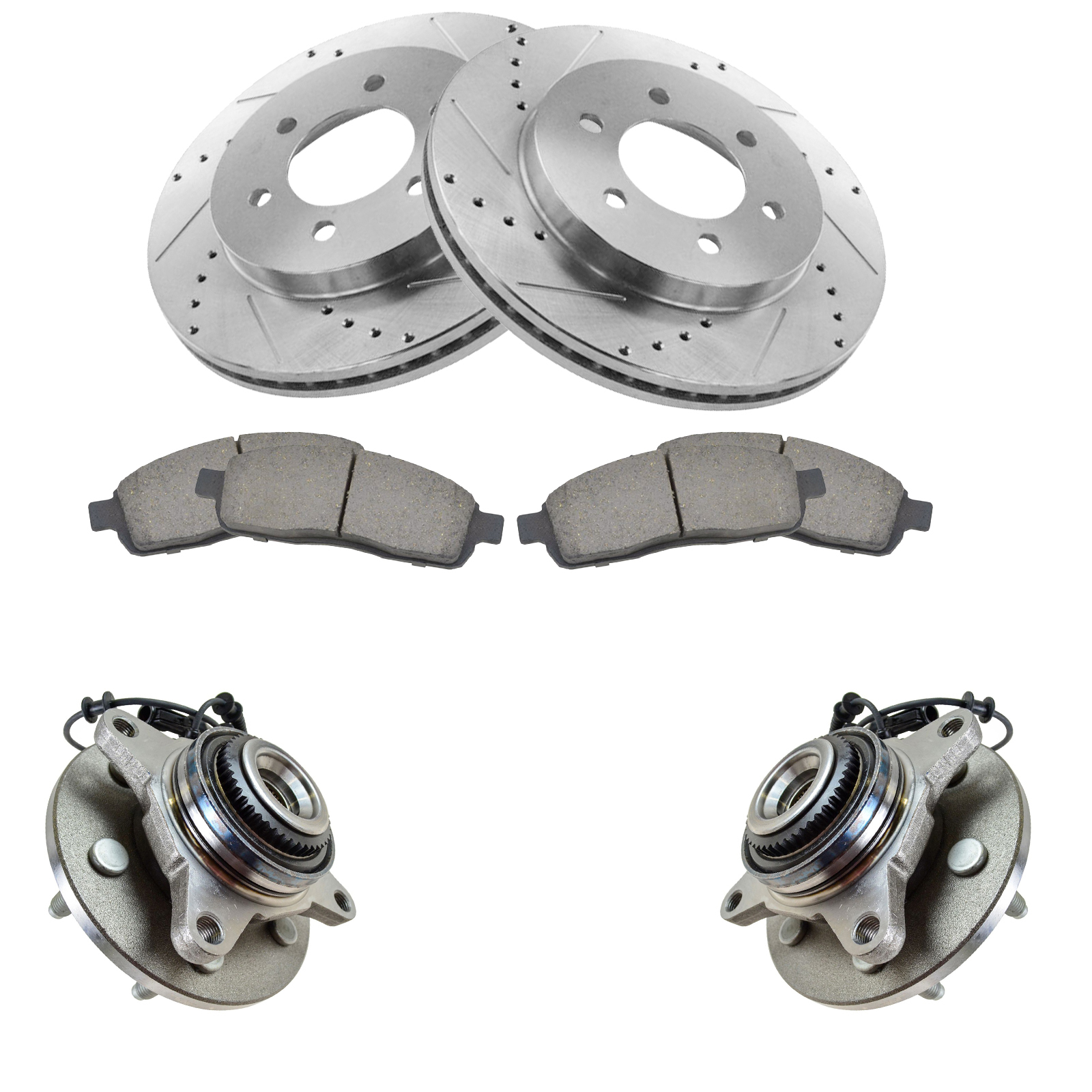 Kit Includes:(2) Front Wheel Bearing & Hub Assemblies, Kit Includes:(2) Front Performance Brake Rotors, Kit Includes:(1) Front Ceramic Brake Pad Set with Contact Point Grease & Hardware