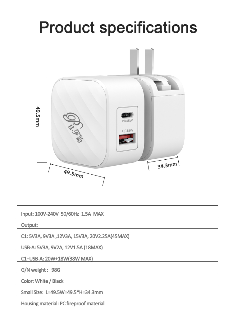 SPECIAL FEATURES:- Fast Charge, Lightweight, CE Approved, USB-C, Type C, Stylish Finish, Sleek, Compact Slim Design, Fast Charging, Quick Charge, Dual USB, QC 3.0,AI (Artificial Intelligence) circuit design, 45W Quick Charge 3.0 Dual USB-A & USB-C Outlets, PD Plus, Power Adapter, Wall Charger, Wall Mount, UK Plug