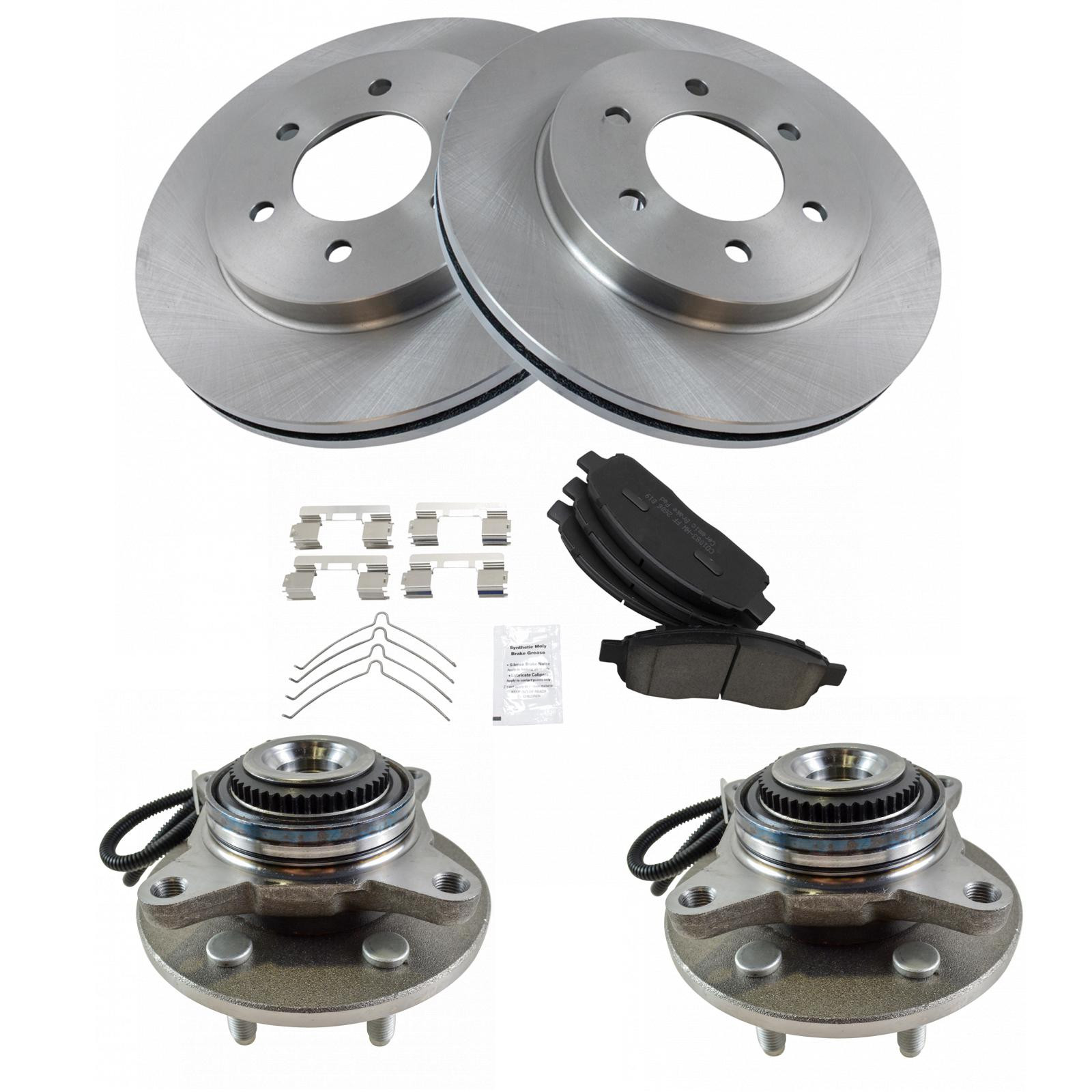 Kit Includes:(2) Front Brake Rotors, Kit Includes:(1) Front Ceramic Brake Pad Set with Contact Point Grease & Hardware, Kit Includes:(2) Front Wheel Bearing & Hub Assemblies