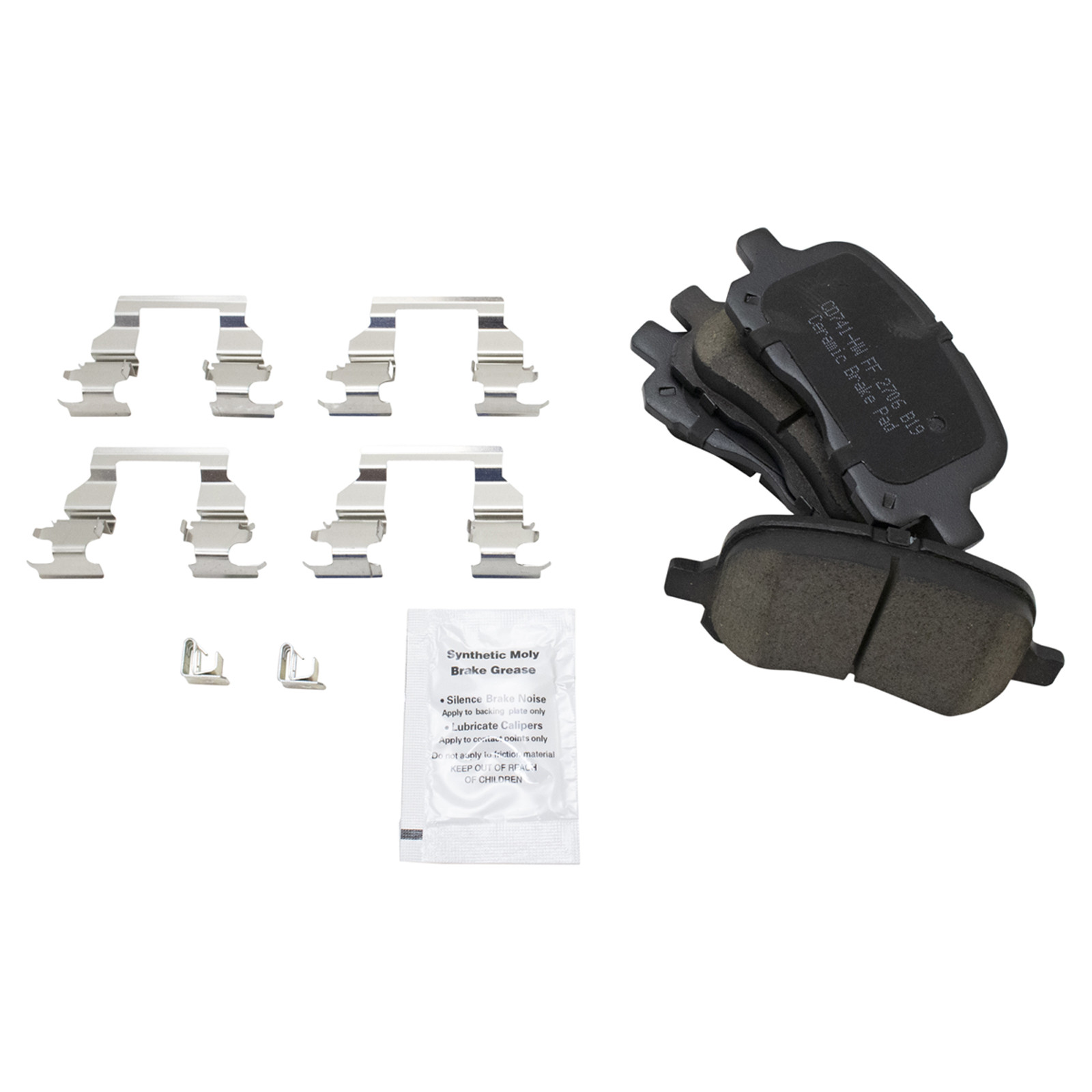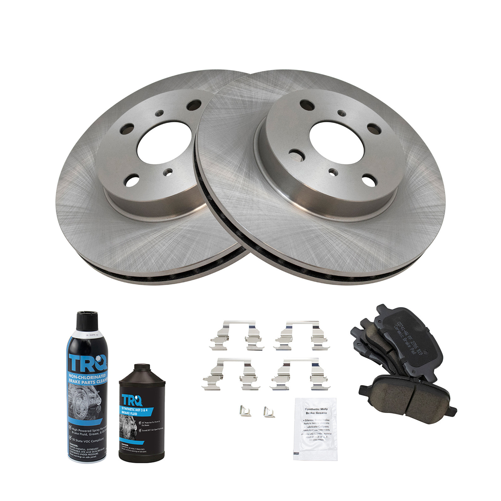 Kit Includes:(2) Front Brake Rotors, Kit Includes:(1) 12 oz DOT 3 & 4 Brake Fluid, Kit Includes:(1) 13 oz Non-Chlorinated 50 State Formula Brake Cleaner, Kit Includes:(1) Front Ceramic Brake Pad Set with Contact Point Grease & Hardware