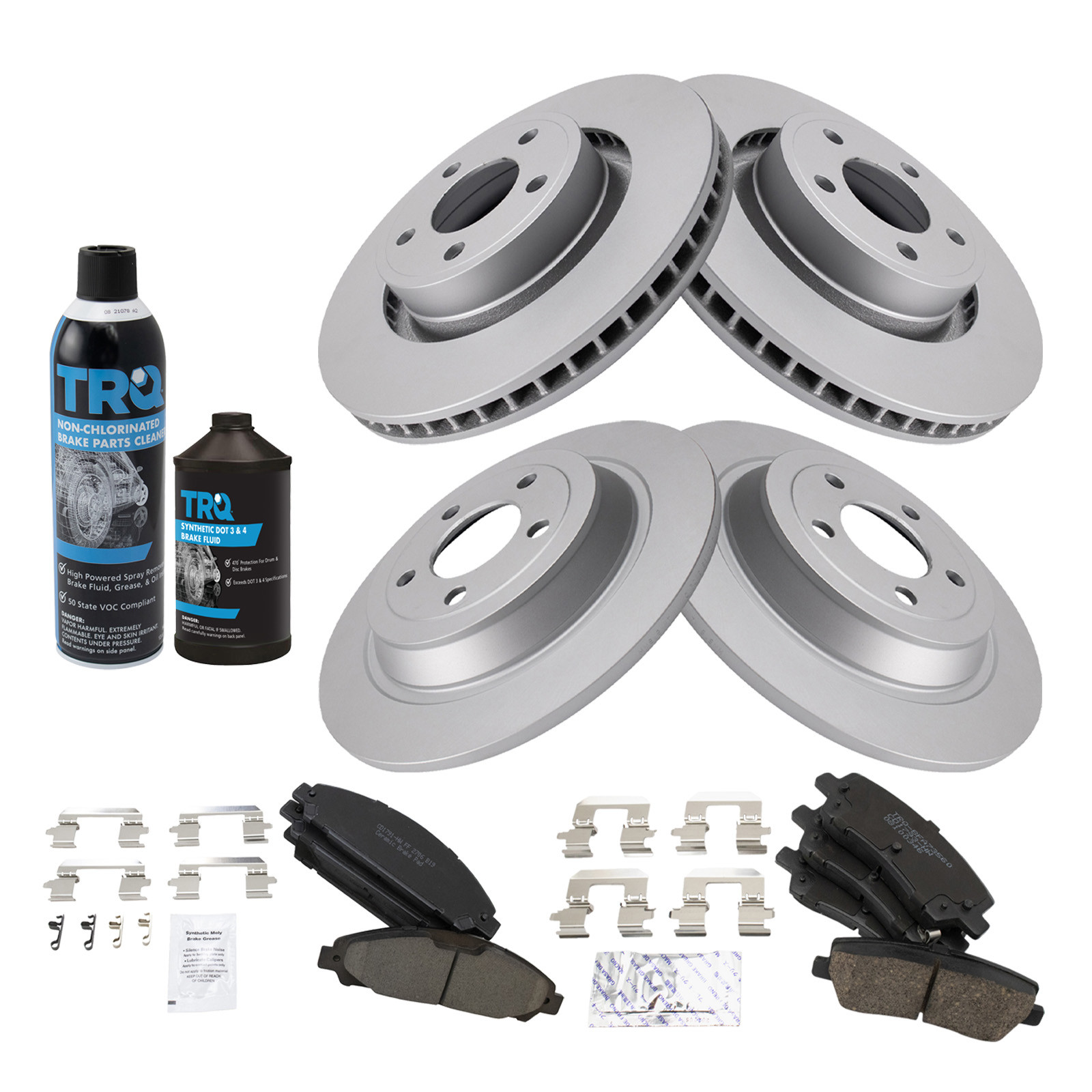 Kit Includes:(1) Rear Ceramic Brake Pad Set with Contact Point Grease & Hardware, Kit Includes:(1) Front Ceramic Brake Pad Set with Contact Point Grease & Hardware, Kit Includes:(1) 13 oz Non-Chlorinated 50 State Formula Brake Cleaner, Kit Includes:(2) Rear G-Coated Brake Rotors, Kit Includes:(2) Front G-Coated Brake Rotors, Kit Includes:(1) 12 oz DOT 3 & 4 Brake Fluid