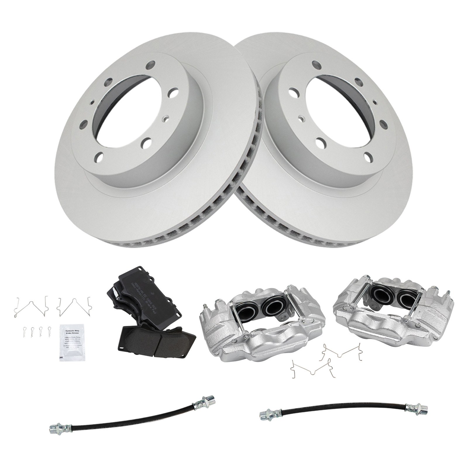 | Toyota | Tacoma | 2005-2011 | TRQ Semi-Metallic 7 Piece Brake Pad & Rotor Kit with Calipers & Hoses | Front | Pre Runner | with 4 Piston Front Caliperswith 6 Lug Wheels | |