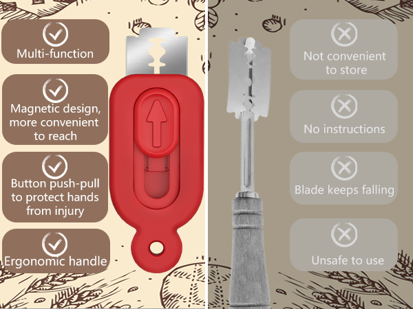 - 【Magnetic Storage】 With built-in magnets, you can store this bread scoring tool on metal surfaces like the refrigerator or oven. No more worries about misplaced tools.
