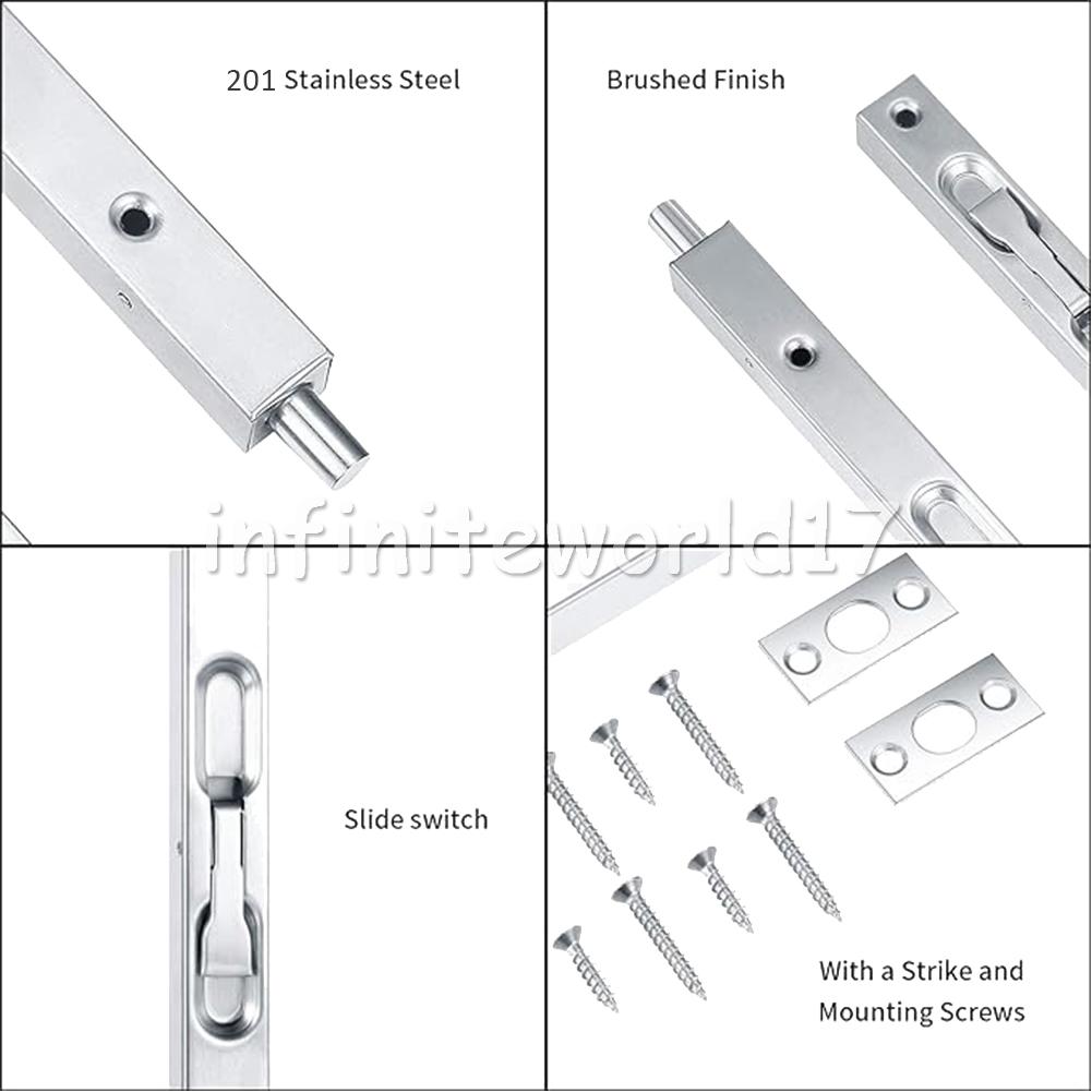 The 2 Pcs slide door locks are made of stainless steel with chrome polished surface, smooth and not easy to rust even in a damp environment.