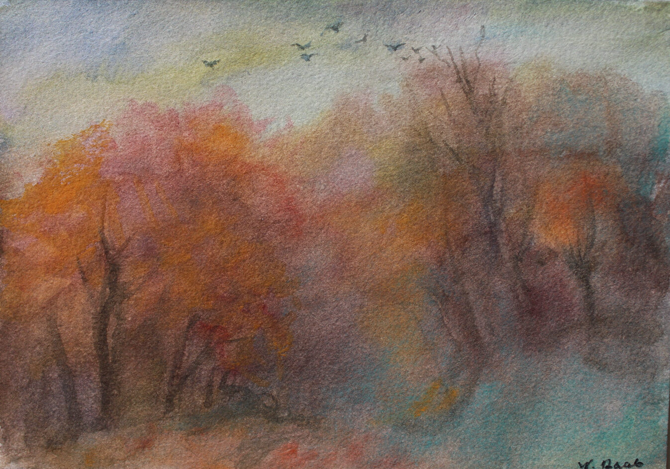 Nebel im Taunus, Wilhelm Raab, Aquarell, Gemälde