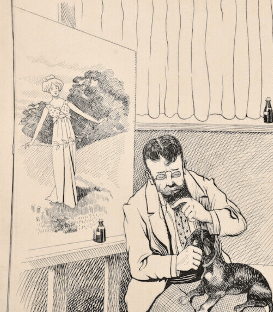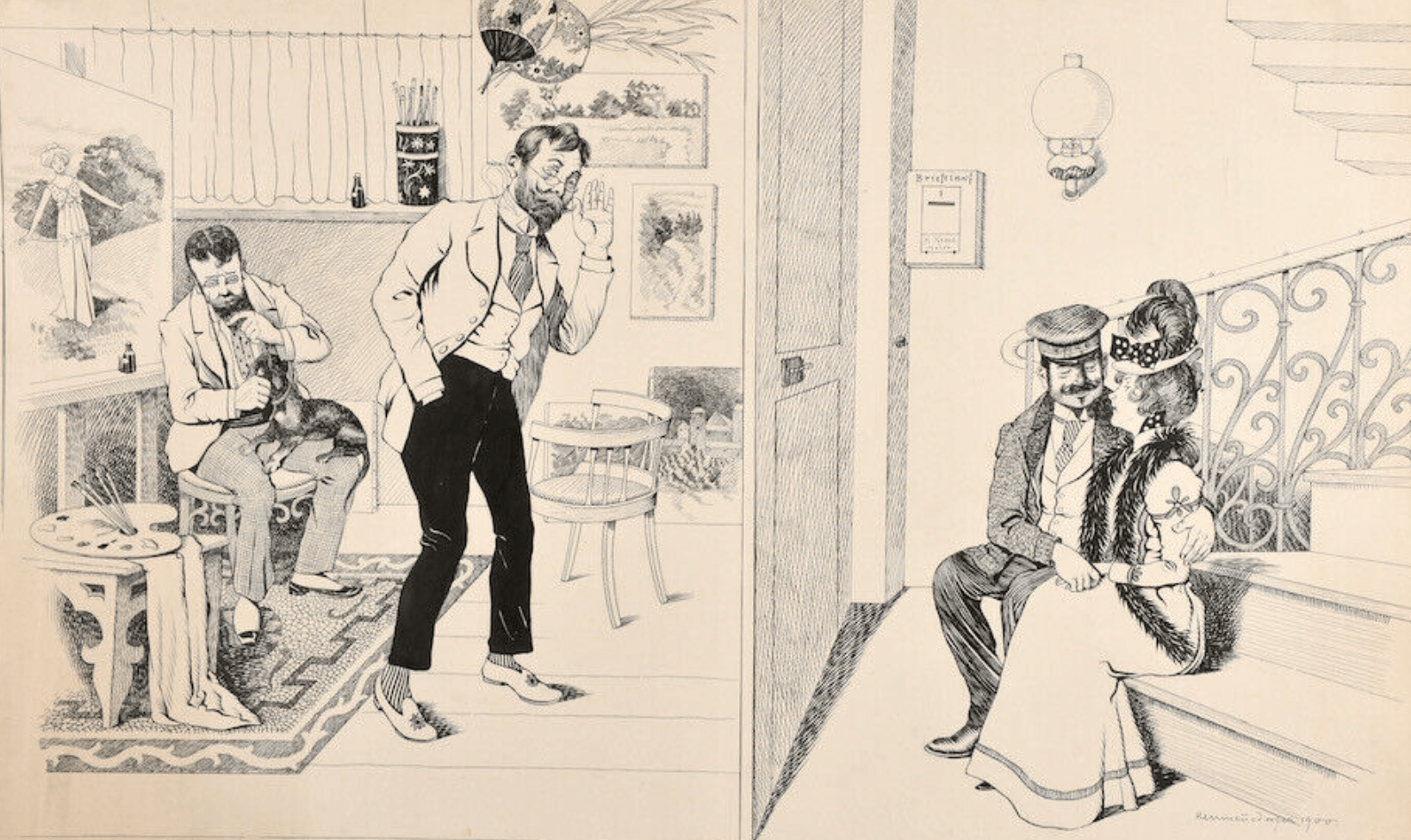 Beim Tierarzt | Federzeichnung von Joseph M. Hermannsdorfer