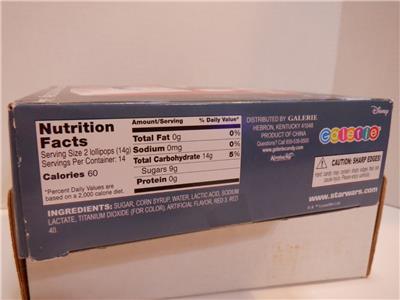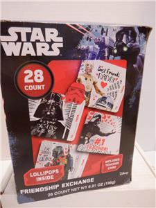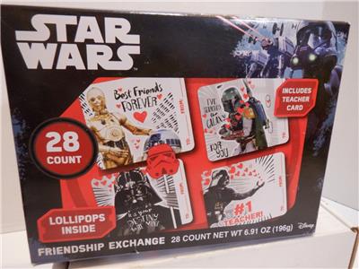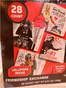 Says on Box: "Star Wars, Includes Teacher Card, 28 Count, Lollipops Inside, Friendship Exchange 28 Count, Disney