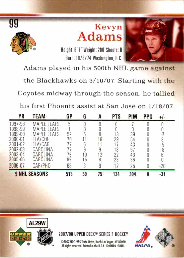 | 2007-08 Upper Deck Kevyn Adams #99 |