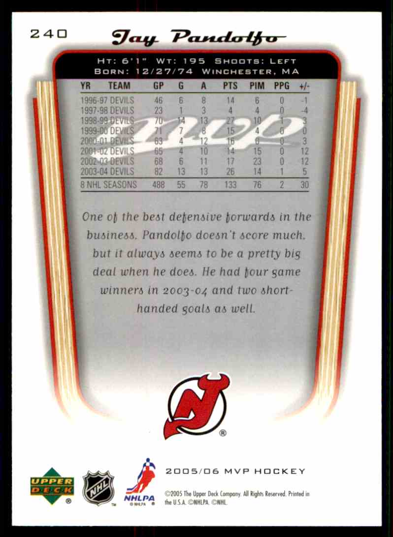 | 2005-06 Upper Deck MVP Jay Pandolfo #240 |
