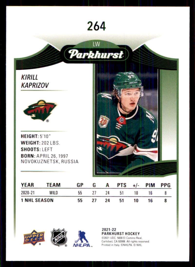 | 2021-22 Parkhurst Kirill Kaprizov Minnesota Wild #264 |