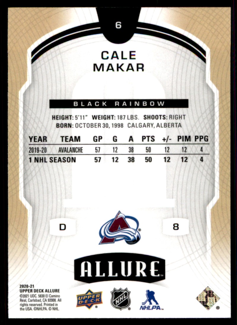 | 2020-21 Upper Deck Allure Black Rainbow Cale Makar #6 |