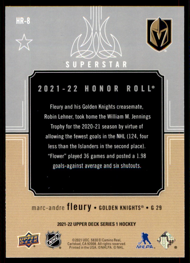 | 2021-22 Upper Deck Honor Roll Marc-Andre Fleury #HR8 |