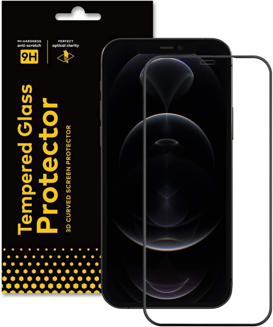 • Compatible avec Apple Iphone 12 PRO MAX (6.7) (couverture plein écran en verre trempé incurvé 3D) (PACK DE 1)