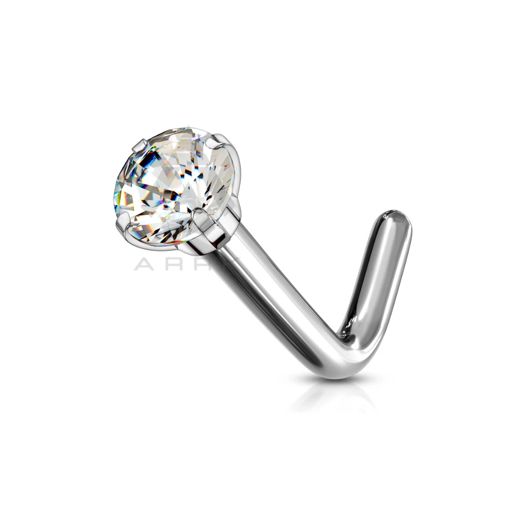 titanium, this L-bend stud features a 2mm round prong set with sparkling cubic