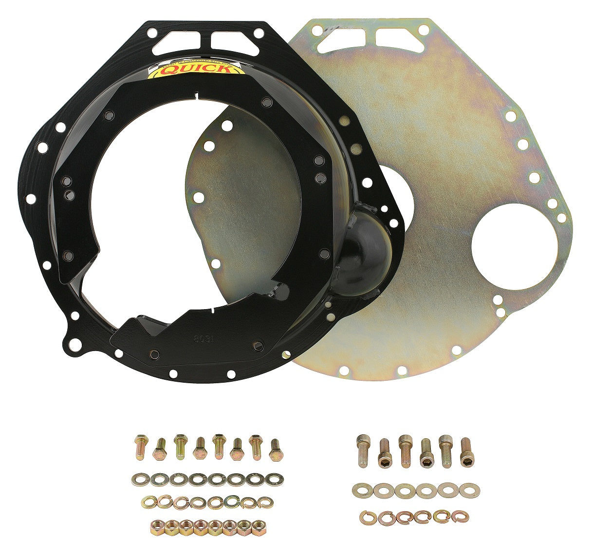 You are bidding on a Brand New QuickTime Bellhousing - Ford 5.0/5.8L - Ford T-56 Transmission (Part #RM-8031). Typical fit for 5.0/5.8L Fords with T56 Ford transmissions in 94+ SN95 Mustang Utilizing Cable Clutch - Fork positioned at 7:00. The Quick Time RM-8031 bellhousing connects small block Ford engines to T-56 Ford transmissions. This bellhousing is S.F.I. 6.1 certified which is required by many sanctioning bodies for cars running 11.49 or faster in the quarter mile. This bellhousing is a universal fit bellhousing and is not vehicle specific. The clutch fork opening on this bellhousing is at the 7:00 position. The Quick Time bellhousings are produced using a unique spin forming process which results in a very high strength material. This high material strength allows the Quick Time bellhousings to be light weight while maintaining the protection you desire. Note: (Transmission Mounting Bolts Not Included). Features: