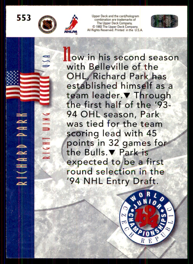 | 1993-94 Upper Deck Richard Park RC USA #553 |