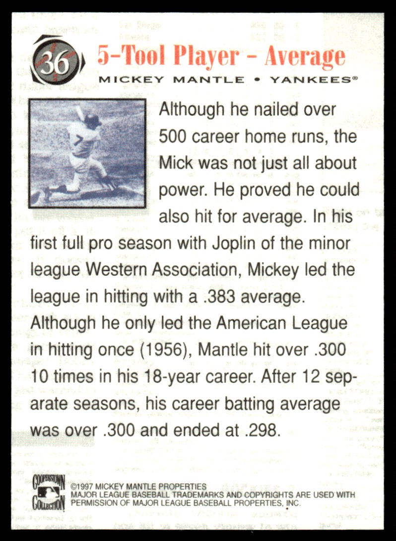 | 1997 Scoreboard Mickey Mantle MICKEY MANTLE New York Yankees #36 | ||||||||||||||||