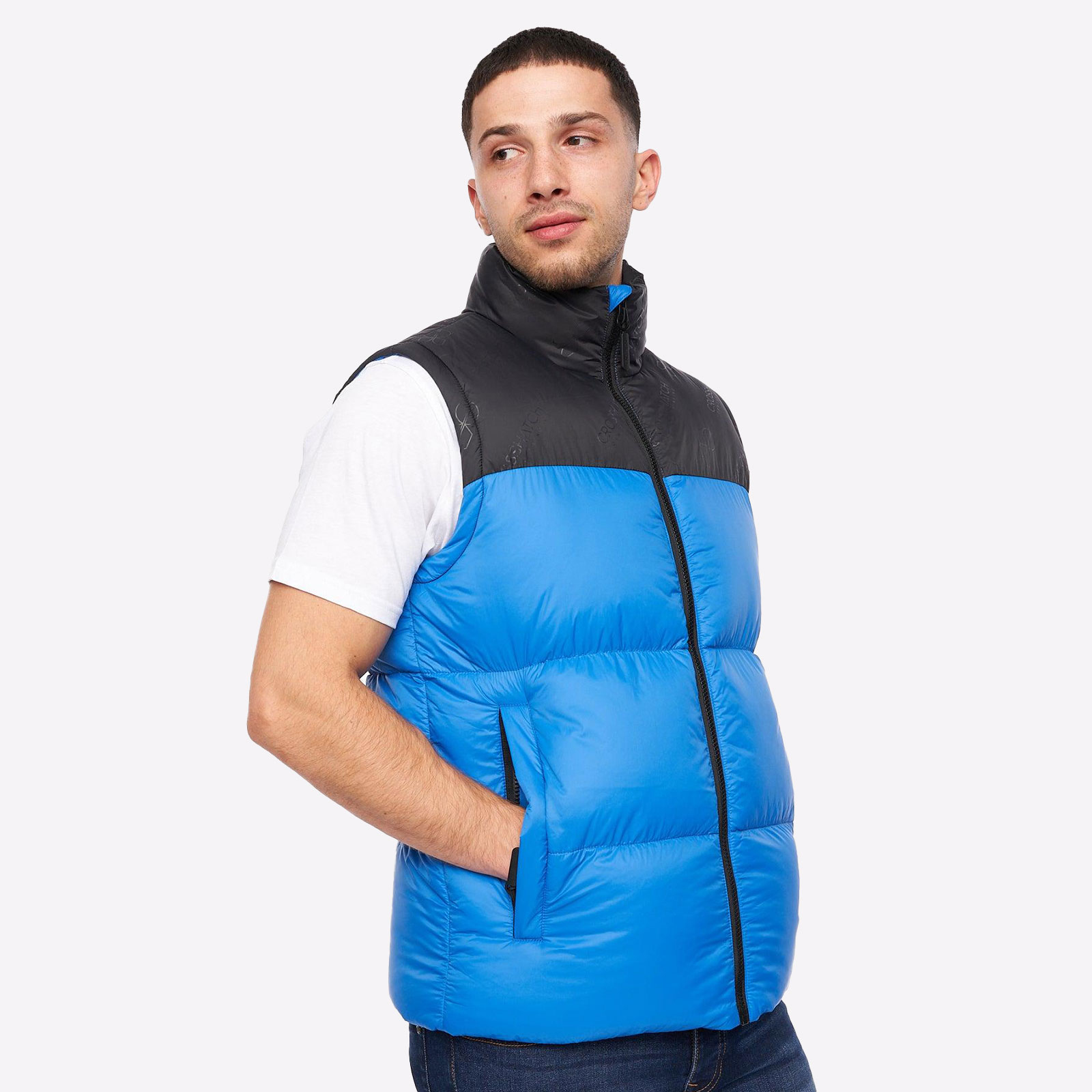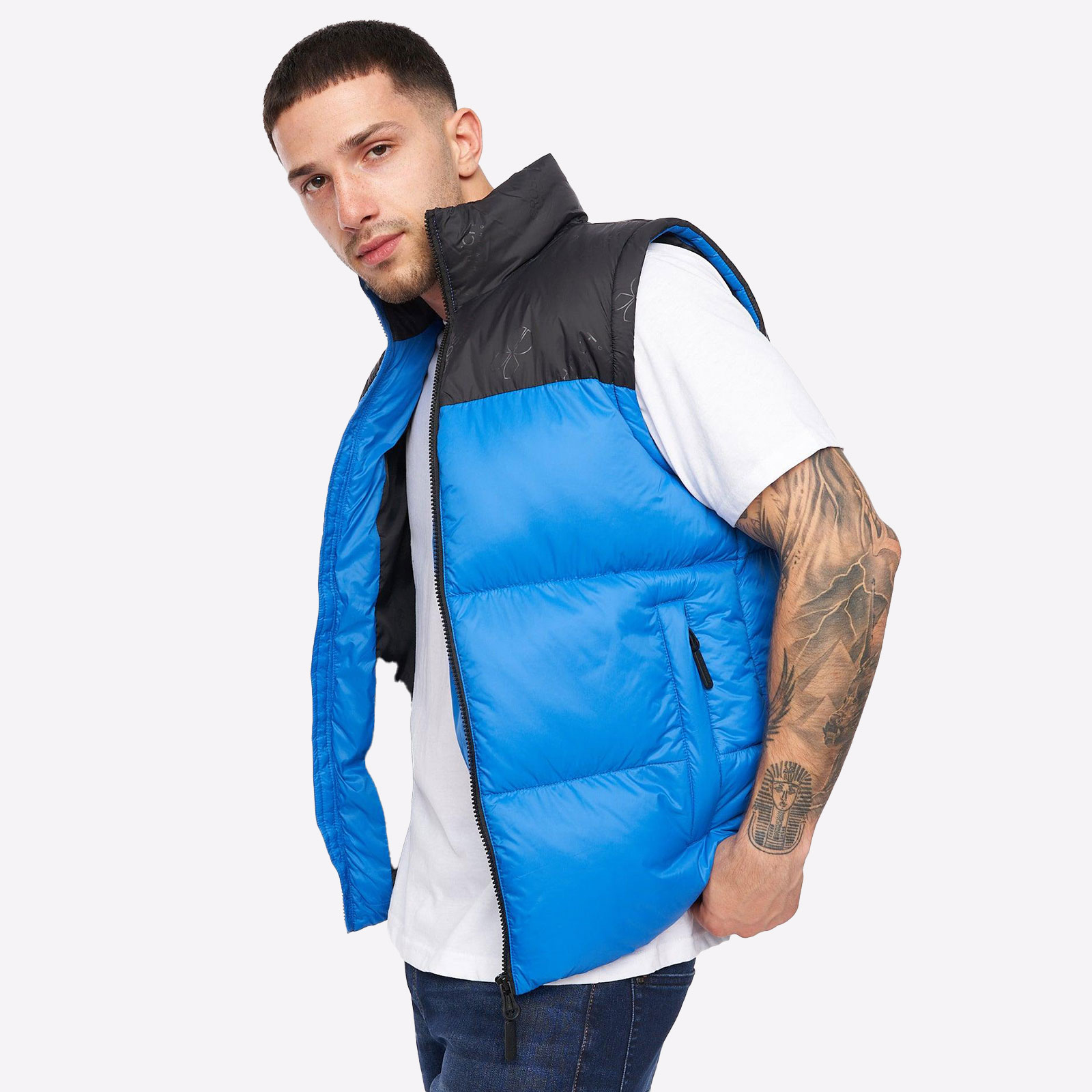 For functionality, the gilet includes a self-fabric welt pocket with a secure zip closure, providing convenient storage for essentials like keys or a wallet. This pocket is strategically placed for accessibility without compromising the sleek design of the gilet.