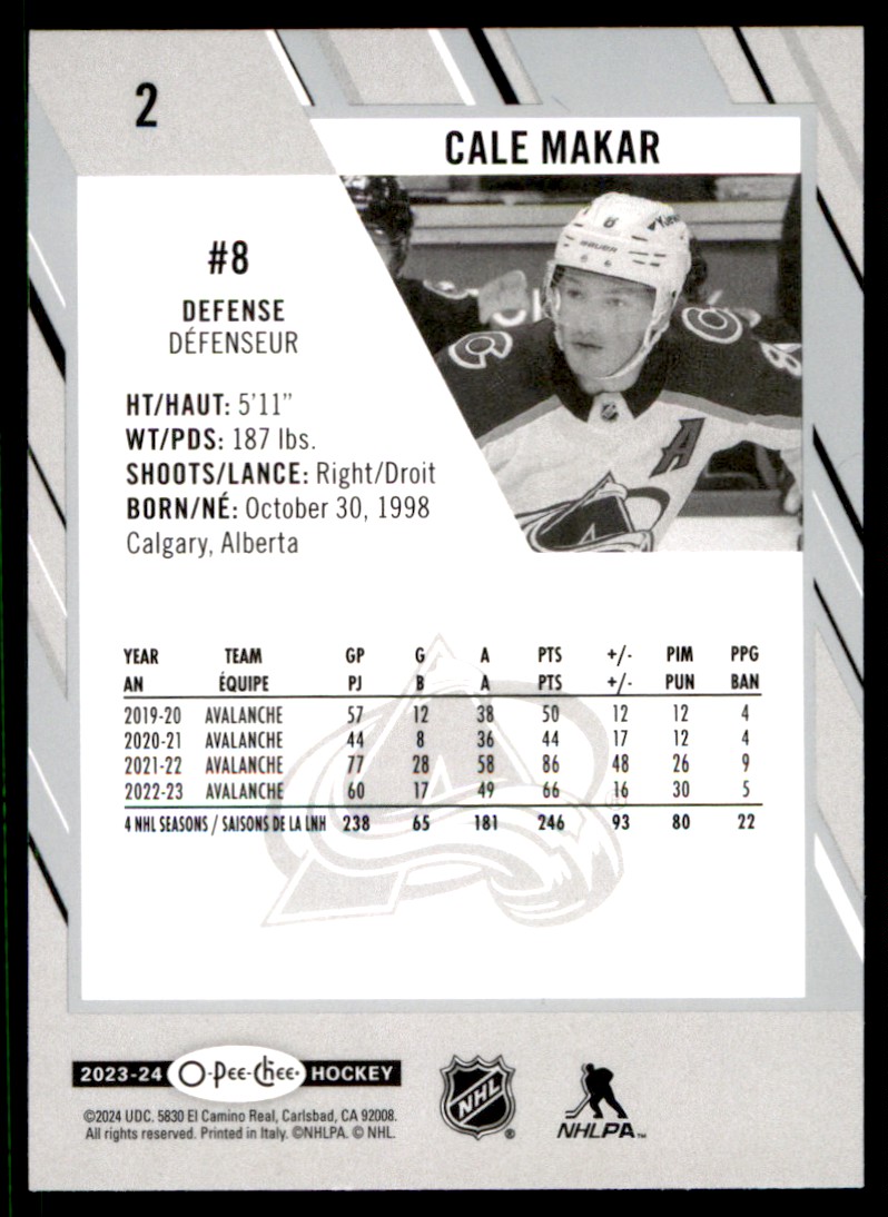 | 2023-24 O-Pee-Chee Cale Makar Colorado Avalanche #2 |