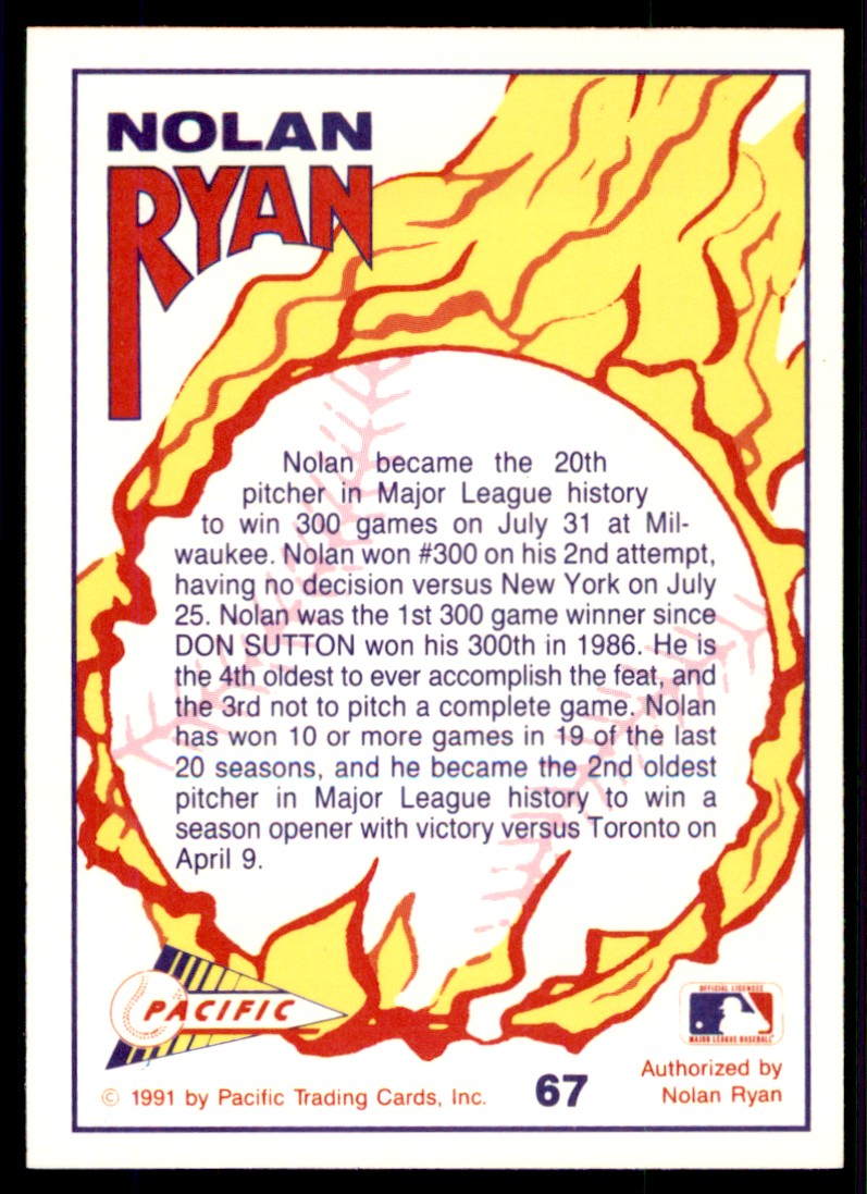 | 1991 Pacific Nolan Ryan Texas Express I 20th Pitcher to Win 300 Acknowledging |