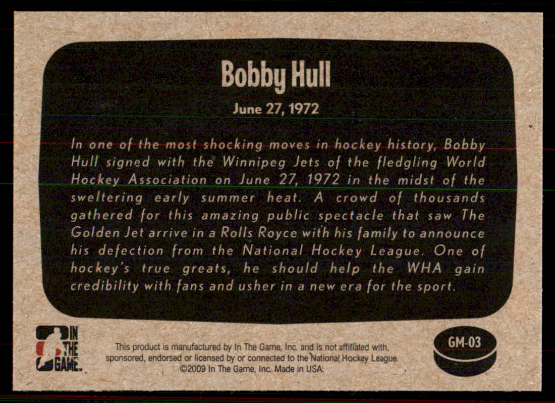 | 2009-10 In The Game 1972 Year Hockey Great Moments Bobby Hull/Signs with Jets |